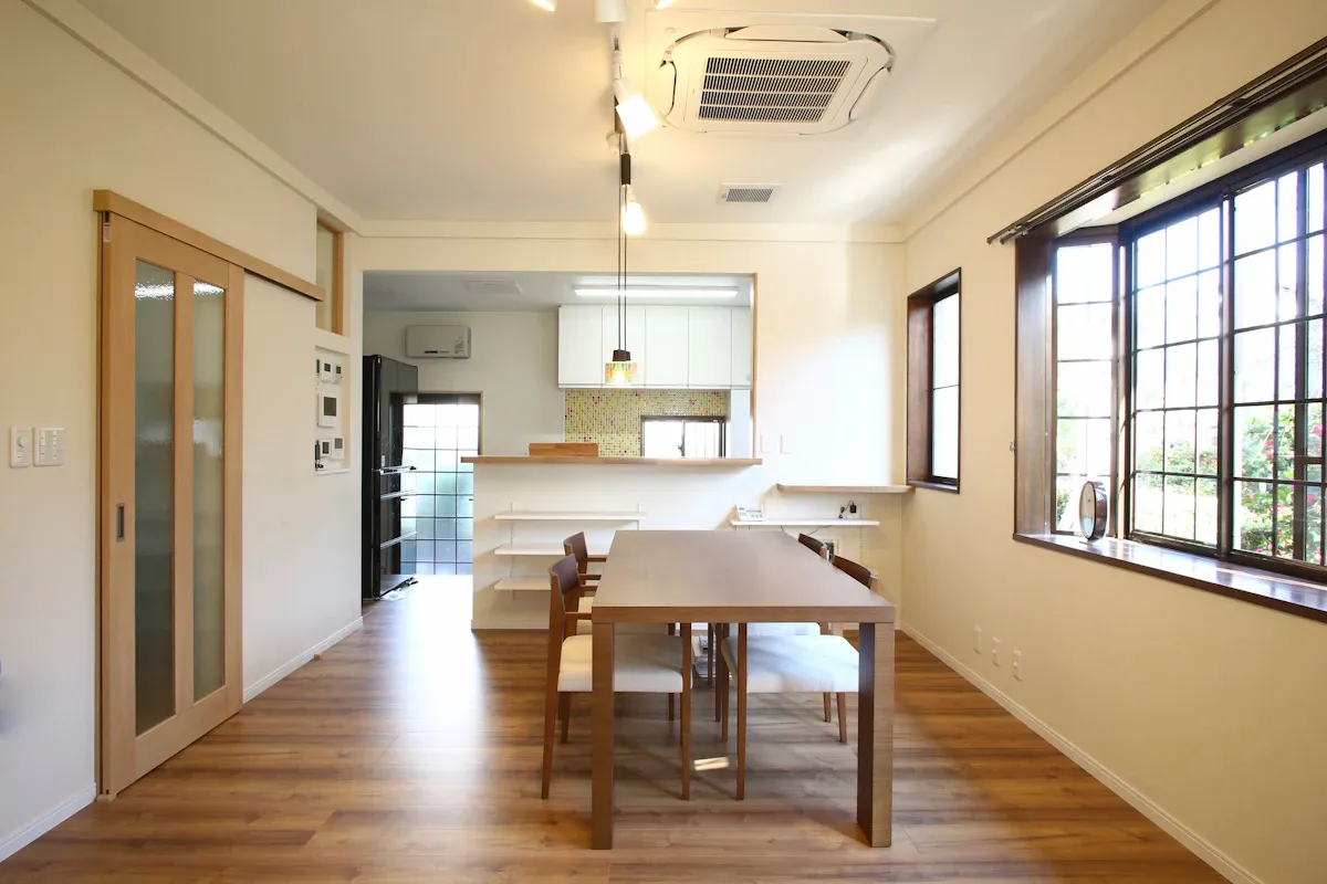 工事では、和室を除く全室の内装と、キッチン・浴室などの水回り設備を一新。床は安全性を考えてフローリングに変更しました。家族の団らんの中心となるダイニングには床下暖房を設置し、寒い時期も快適に過ごせるようにしています。